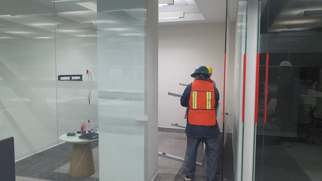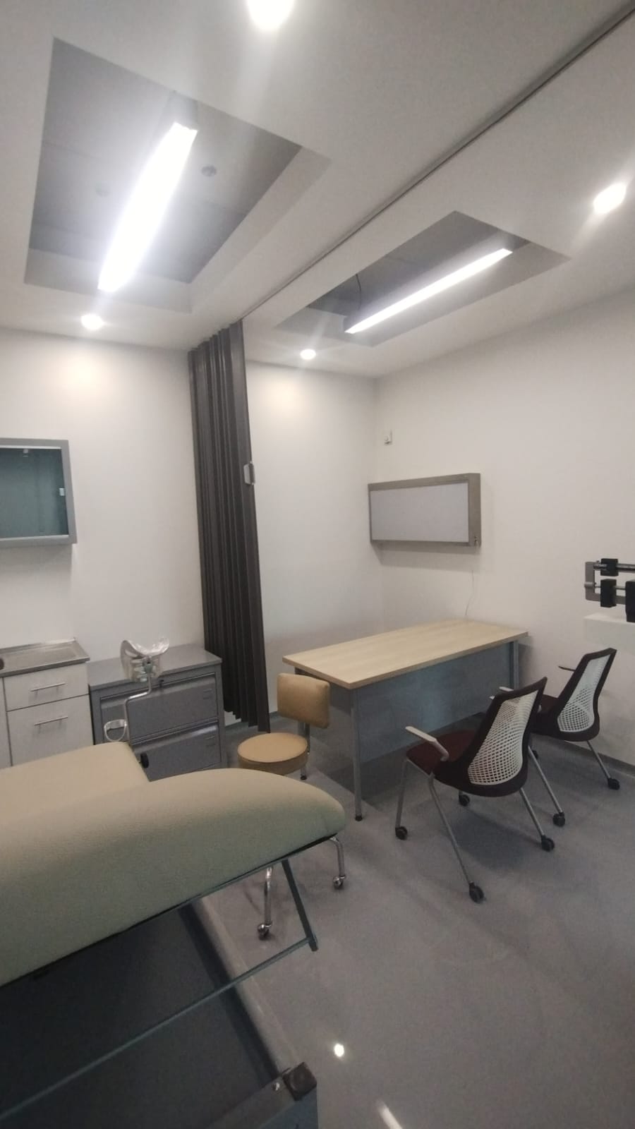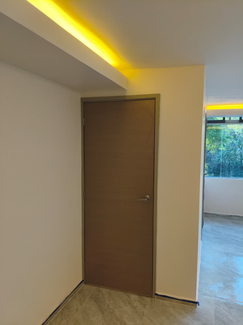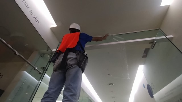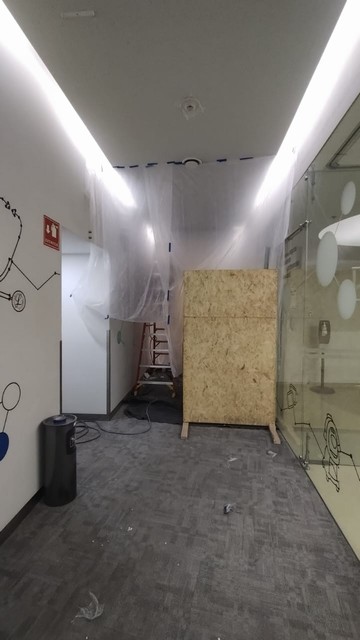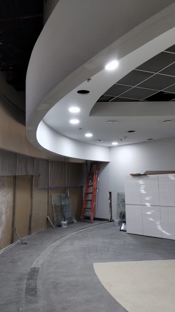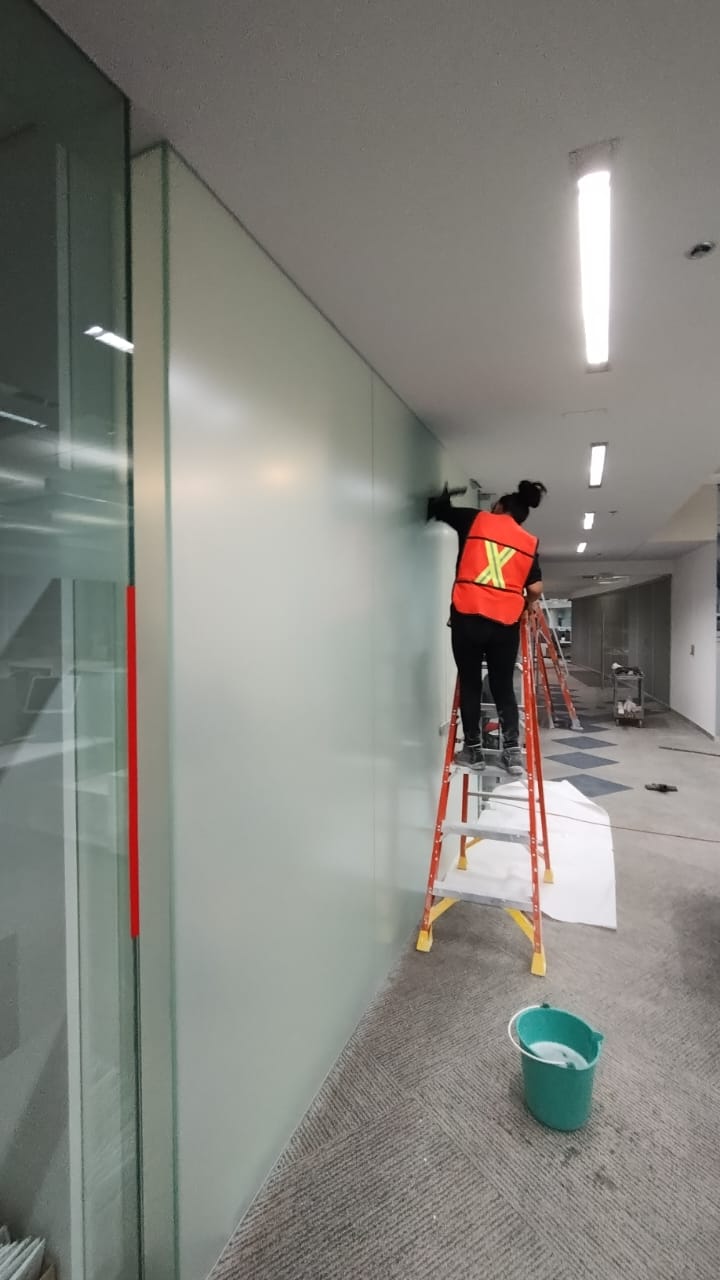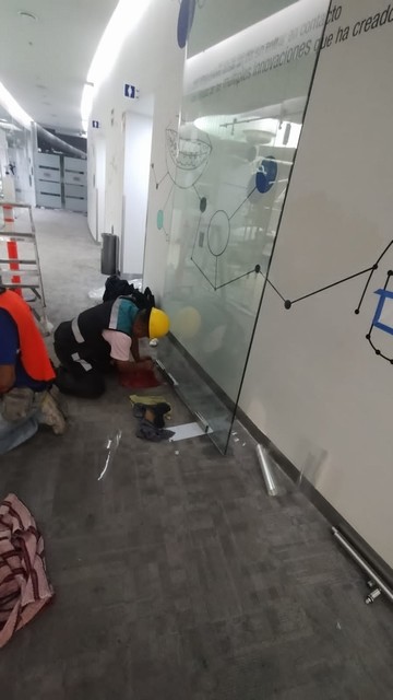 Adecuación de local comercial para estudio de pilates. El proyecto integró la renovación de acabados cerámicos en superficies, construcción de cajillos de tablaroca con iluminación LED, carpintería metálica en vidrio templado y la habilitación de instalaciones eléctricas especializadas para equipo deportivo.
